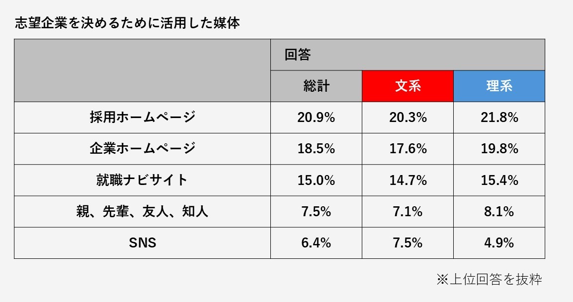 また、文系学生は「SNS」など、日常的な接点から企業を知る傾向が強いようです。