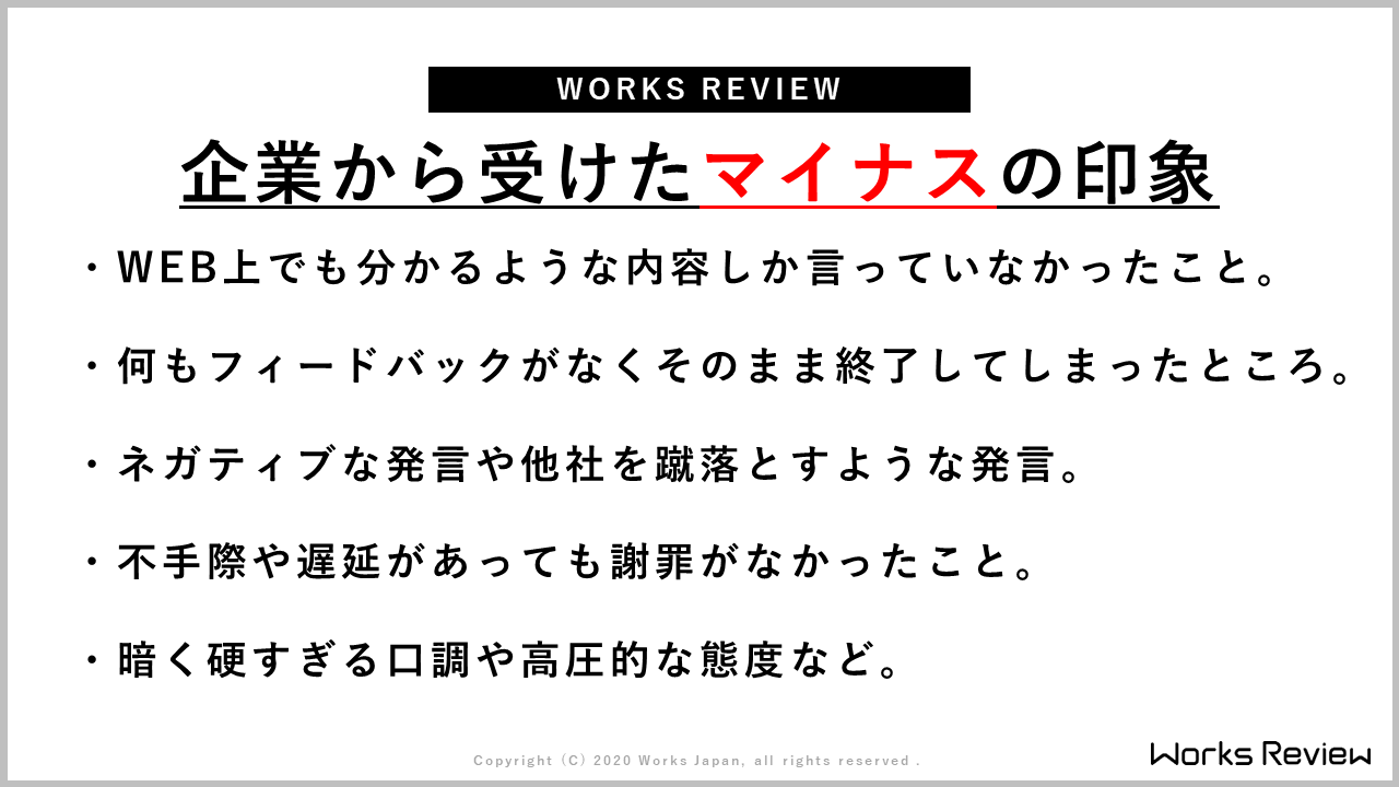 ありがとうございます。それではマイナスの印象を受けたものを見ていきましょう。