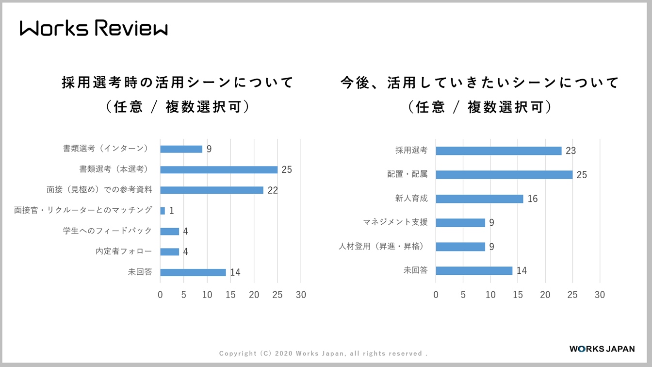 - 弊社はリクルーターの活動の中ではかなり注力してきたので、今後は新しいビジネスを立ち上げてくれるような人材や、技術に特化したような学生を採用して、その方が3年後、5年後、10年後に、実際にどう成長していったか、元々採用するときに本当に求めていた人材だったのか、効果測定していきたいという思いと、あとは昔から働いてきた社員と新しい志向の社員が一緒に働いたときに、新しいタイプの社員を育てていくような風土を醸成したいと思っているので、そこで何か活用できないかと考えています。例えば、実際に効果測定というと、指標として決めてそれに対してどうだろうみたいなものを、ヒアリングをかけて見ていくことがイメージとしてはありますが、ではそれを育てていく側が本当に今のままでいいのだろうか、というところに少し疑問を感じていたりするので、そこに対して、上司側にフィードバックをかけて、接し方を変えるということに使えないかな、と考えています。