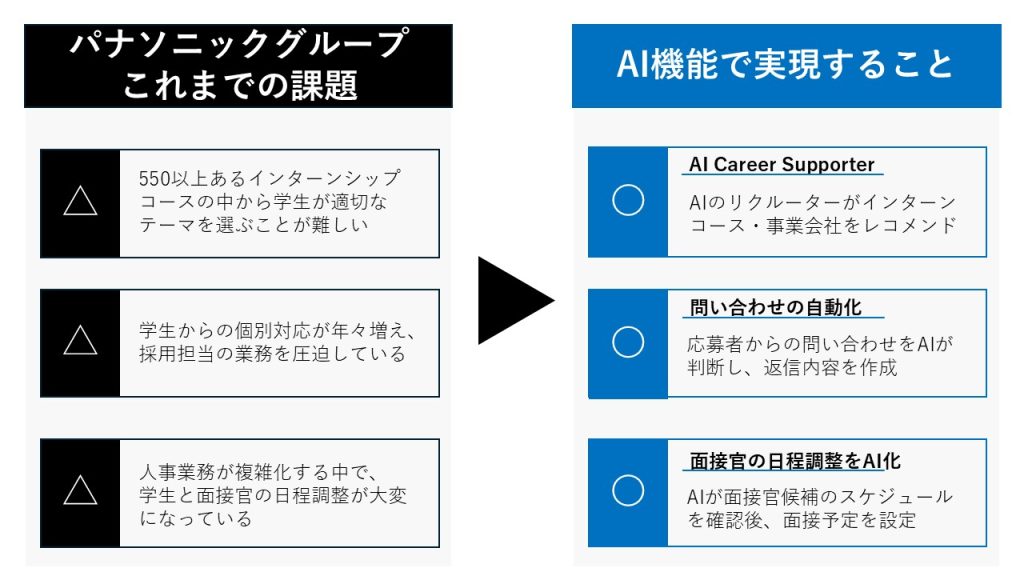 また、パナソニックグループでは、AIを評価ではなく、学生への情報提供の精度向上・効率化を目的に導入しました。