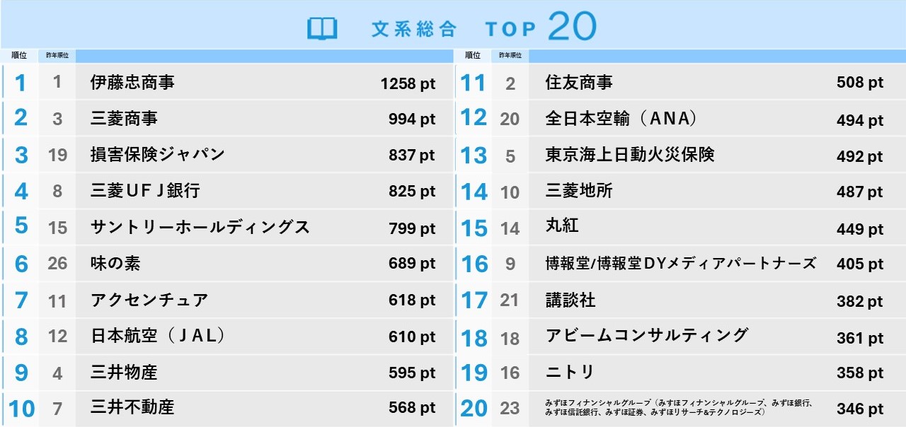 就職人気企業ランキング結果/文系総合