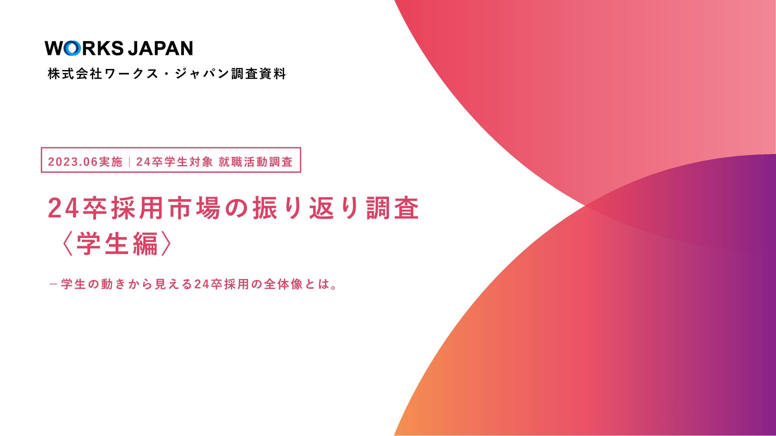 2023.11.30 採用活動 “タイパ重視”の学生をグリップ!企業のリテンション対策|ゼネコン×メーカー採用展望 新卒採用学生動向企業動向早期選考インターンシップリクルーター活用 2023.10.17 調査資料 約80%の学生が1day・インターンシップ含む2days以上のプログラムに参加|ワークス・ジャパン【25卒学生】秋調査 新卒採用学生動向インターンシップ 2023.09.19 採用活動 〈理系・情報系学生〉を獲得!企業の採用施策をご紹介【24卒傾向&25卒予測あり】 新卒採用学生動向DX・理系人材 2023.07.21 調査資料 25卒学生の約90%がインターンシップに向けてすでに動き出し ワークス・ジャパン【25卒学生】夏調査 新卒採用学生動向 2023.07.21 調査資料 6/16時点で約90%の学生が就活終了ワークス・ジャパン【24卒】学生調査 新卒採用学生動向 2022.08.31 採用活動 採用総括セミナー|23卒採用総括と24卒採用の展望【第一部】 新卒採用学生動向 2022.04.08 採用活動 『大学から見た企業の採用活動への期待と24卒学生動向~学生が求めるインターンシップとフォロー~』を開催しました。 新卒採用学生動向 2021.10.08 調査資料 学生調査 23卒学生インターンシップ活動に関する調査資料を公開しました。 新卒採用学生動向 2021.09.15 採用活動 「理系採用戦略~ターゲット学生に合わせたコミュニケーションとは~|三井化学×ルネサスエレクトロニクス×POL」を開催しました 新卒採用学生動向DX・理系人材 2021.07.30 調査資料 学生調査 22卒学生の就職活動に関する調査資料を公開しました。 新卒採用学生動向 2 / 4«1234» 採用広報に関する情報を定期的に受け取りたい方 メールマガジンに登録する