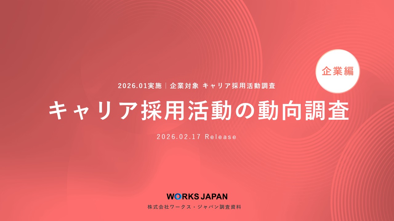 今後開催予定のイベント Upcoming Event 最新記事 Latest article 2026.03.10 採用活動 人的資本経営を採用で実践する――「社員を大切にする」を採用力に変える方法 2026.03.10 調査資料 採用強化方針は続く一方、エージェント依存見直しへ|ワークス・ジャパン キャリア採用企業調査 2026.03.05 採用活動 1dayインターンとは?採用に繋がる?内容やメリット・注意点 2026.02.27 採用活動 採用パンフレットの作り方|求職者に選ばれる内容とデザイン事例 2026.02.18 採用活動 「早期絞り込み」をどう突破する?学生を惹きつけるブランディングの極意 2026.02.16 採用活動 新卒採用手法10選を徹底比較!メリット・デメリットや費用まで解説 2026.02.06 採用活動 ダイレクトソーシングとは?ダイレクトリクルーティングとの違い、メリット・デメリットを解説 2026.02.03 採用活動 ダイレクトリクルーティングとは?メリット・デメリットや成功させる手法を解説 2026.01.30 調査資料 12月時点で学生の約3割が内定保有|ワークス・ジャパン【27卒学生】冬調査 2026.01.20 採用活動 採用コスト一人当たりの平均相場|新卒・中途別の違いと削減方法を解説 View More 採用広報に関する情報を定期的に受け取りたい方 メールマガジンに登録する